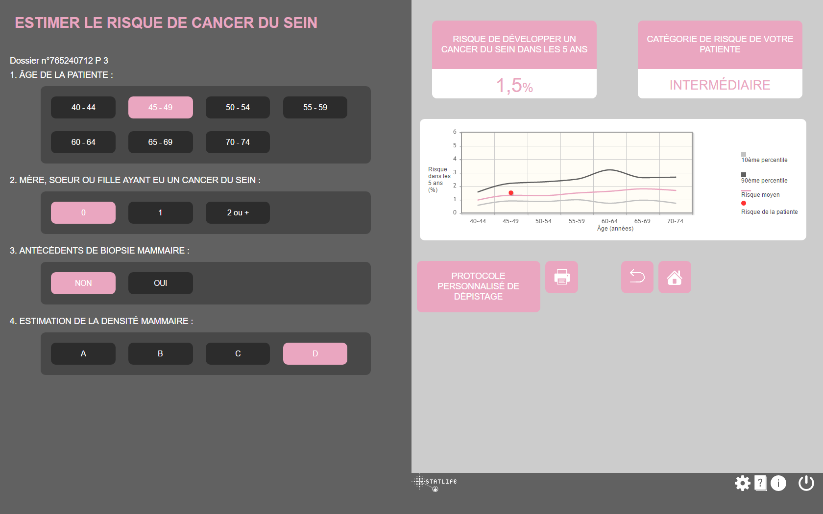Mammorisk permet d’adapter la fréquence et les modalités d’imagerie de dépistage en fonction du risque de cancer du sein, à partir des recommandations officielles.