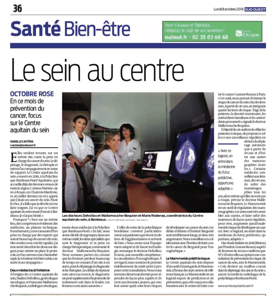 Consultez également l’article paru dans le journal Sud-Ouest sur le Mammorisk, à l’occasion d’Octobre Rose